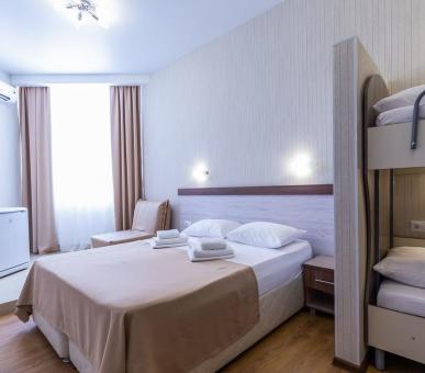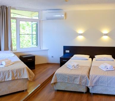 Шестиэтажный корпус пансионата «Аквамарин» выстроен из кирпича и поэтому прохладен летом даже в жаркие дни. Окна номеров выходят на горы или море – гостям обеспечен прекрасный панорамный вид. Каждый номер отеля в пансионате «Аквамарин» в Сочи оснащен мягкой мебелью, удобными ванными комнатами и самой современной техникой. На каждом этаже расположены кулеры и гладильные доски с утюгами.