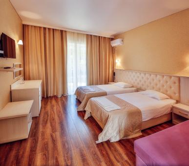 Номерной фонд санатория “Жемчужина моря” в Кабардинке представлен номерами категории: апартаменты, люкс, сюит, стандарт. Номера убираются каждый день, смена белья раз в неделю, а полотенец раз в три дня. Дети до 3 лет заселяются с родителями бесплатно, но лечение и питание для таких гостей не предусмотрено.