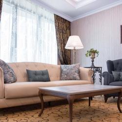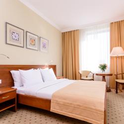 В комплексе – два корпуса: в двухэтажном – шесть номеров, в четырехэтажном – 29. Во всех номерах есть душ, кабельное ТВ, холодильник и кондиционер. Есть бесплатный wi-fi (на территории и в лобби).