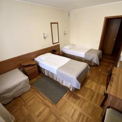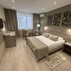 В жилом фонде гостиницы «Водопад» в Новом Афоне – номера разных категорий: от «стандарта» до «люкса». Кондиционеры, телевизоры и холодильники есть в каждом из них – так же, как удобная мебель приятных расцветок. Обстановка в номерах привлекает изысканной простотой и лаконичностью, а «люкс» выглядит роскошно и стильно.
