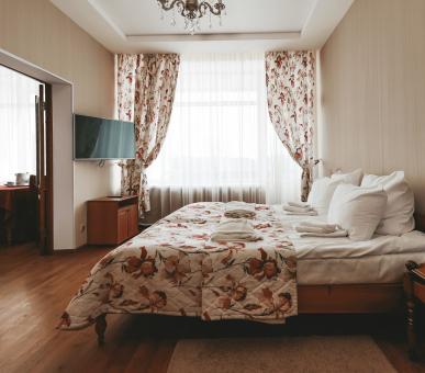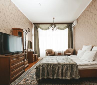 В санатории есть два отдельных жилых корпуса. Первый 7-этажный корпус, постройки 1976 г., рассчитан на 300 человек. Корпус «люкс» – 2-этажное здание в классическом стиле дворцовой усадьбы ХIХ века. Просторные холлы, зимние сады, оригинальные картинные галереи, комфортабельные номера со всеми удобствами располагают к приятному отдыху и полноценному восстановлению сил и здоровья. Для более уединенного и спокойного отдыха предназначены комфортабельные коттеджи, находящиеся отдельно, в лесу.