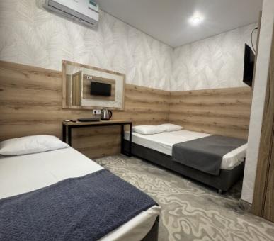 Четырехэтажный корпус отеля разместился на тихой зеленой улице города. Территория с небольшим внутренним двориком благоустроена и огорожена от посторонних. Жилой фонд предлагает отдыхающим номера разных категорий. Гости могут выбрать стандартные номера с индивидуальной ванной комнатой или остановиться в бюджетных вариантах с общим санузлом на этаж. Каждый номер укомплектован удобной мебелью и оснащен техникой: везде есть сплит-система, электрочайник, телевизор.