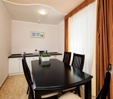 В главном корпусе работают столовая и лобби-бар, еще один бар открыт на пляже. В распоряжении гостей два бассейна – крытый и уличный с детской зоной. Бассейны наполнены морской водой, крытый работает круглогодично. В спа-центре отдыхающие могут расслабиться после насыщенного дня, к их услугам – кедровая бочка, сауна, массажный кабинет. Для любителей активного отдыха предусмотрены спортивные площадки, тренажерный зал, есть теннисный корт и футбольное поле. Вечерний досуг скрасят кинопоказы, дискотеки и прочие анимационные мероприятия. Для юных гостей работает игровая комната.