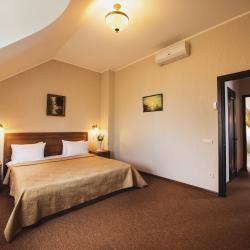 Трехэтажный корпус отеля разместился на благоустроенной территории, окруженной живописной горной природой. В распоряжении гостей уютные номера, рассчитанные на 2-х или 4-х человек. В комнатах светлый приятный интерьер, выдержанный преимущественно пастельных оттенках. Номера оснащены индивидуальным санузлом с душем, есть кондиционер, телевизор-ЖК, в ряде номеров предусмотрена мини-кухня, из окон открываются красивые виды на горы или сад.