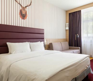 В архитектуре и оформлении отеля также тесно переплетаются народные мотивы и современный комфортный стиль. 153 элегантных номера с завораживающими видами на горы, реку и курорт, оснащены всем самым необходимым для комфортного пребывания. Просторные люксы, выполненные в теплых цветах, декорированы со вкусом и большим вниманием к деталям.