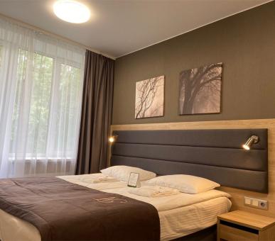 Жилые отдельно стоящие корпуса разной этажности (от 2-х до 5-ти этажей) названы в честь выдающихся русских деятелей культуры и ученых — Рахманинов, Достоевский, Менделеев. К первому корпусу примыкает досуговый центр с танцзалом, в третьем и шестом корпусах находится столовая, шестой корпус также связан с культурно-развлекательным центром и кинозалом. Некоторые здания оснащены лифтом. В общей сложности жилой фонд санатория рассчитан на 619 гостей. Отдыхающие могут выбрать бюджетные варианты блочных номеров с общим санузлом, разместиться в номерах улучшенной категории с евроремонтом или остановиться в корпусах, расположенных в зеленой парковой зоне. В каждом номере есть необходимый мебельный гарнитур и телевизор, в некоторых имеется дополнительная бытовая техника: мини-холодильник и фен.
