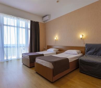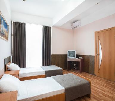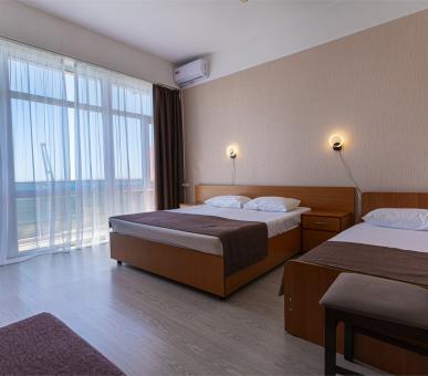 В современном здании отеля – пять этажей, галереи и балконы. «Атлантида» рассчитана на проживание более 66 человек. В каждом номере – все необходимые удобства: санузел с ванной или душем, балкон, обязательный набор бытовой техники в виде сплит-системы, холодильника, телевизора. Доступ в Wi-Fi есть на территории отеля.