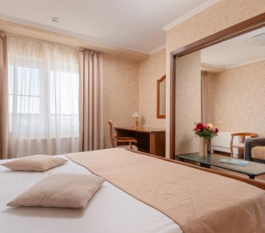 К услугам приезжих – WI-FI, бизнес-центр, открытый охраняемый паркинг, теннисный корт, волейбольная площадка, зал тренажеров, библиотека, детская горка и два пресноводных бассейна с детскими отделениями. В санатории можно взять в аренду велосипед, электросамокат, ролики, коляску.