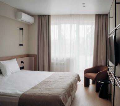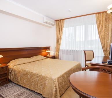 Здравница занимает обширную благоустроенную территорию с тенистыми аллеями и фонтанами площадью 8,5 гектаров. Оно из преимуществ санатория — вся инфраструктура находится в одном здании: восьмиэтажный спальный корпус, оснащенный лифтом, связан с лечебно-диагностическим центром теплым переходом. Жилой фонд, рассчитанный на размещение 174 человек, предлагает гостям двухместные номера Стандарт, Джуниор, Сьют. Светлые просторные номера оснащены всем необходимым — санузлом с душем, удобным мебельным гарнитуром, бытовой техникой, в номерах Сьют есть джакузи.