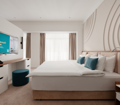 Комплекс на 280 мест представляет единую композицию, в которой семиэтажный спальный корпус соединен переходами с лечебным корпусом, рестораном и клубом. Здравница предлагает отдыхающим номера разного уровня комфортности от класса-стандарт до класса-люкс.