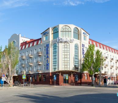 Отель «Ukraine Palace» расположен в центральной части города Евпатория. Вблизи отеля находятся аквапарк и парк аттракционов, дельфинарий, сувенирная аллея, бювет.