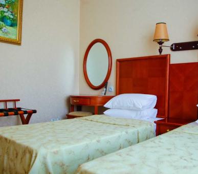 Отель с архитектурой в дворцовом стиле принимает более 260 гостей. Каждый из номеров, независимо от категории, имеет собственный санузел с душевой или ванной, оборудован кондиционером, телефоном, ТВ и wi-fi, холодильником и сейфом. Гостиница подходит для семейного, молодёжного и спортивного отдыха.
