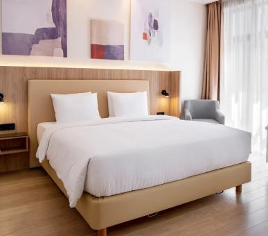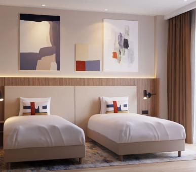 Отель состоит из двух корпусов на 200 комнат. Номера открывают панорамные виды на горы и предлагают полное оснащение, соответствующее уровню четыре звезды.