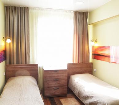 Гостиница разместилась в четырехэтажном здании без лифа. Жилой фонд состоит из одноместных и двухместных номеров категории Стандарт и двухместных Студио. Номера оснащены санузлом с косметическими принадлежностями, укомплектованы необходимым набором мебели, в комнатах есть электрочайник, телевизор, кондиционер.